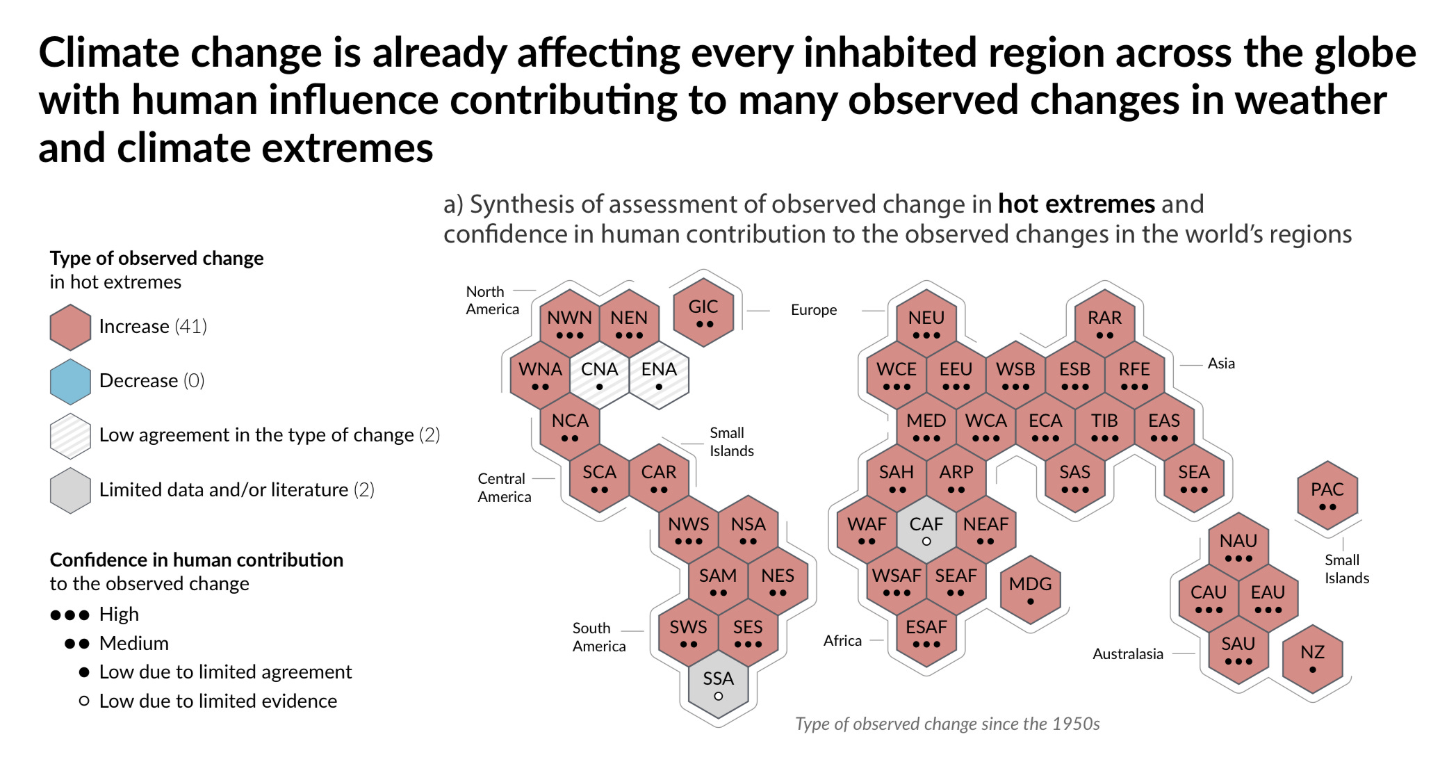 It is unequivocal that human influence has warmed the atmosphere, ocean and land. Widespread and rapid changes in the atmosphere, ocean, cryosphere and biosphere have occurred.