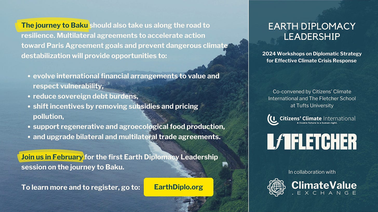 We will add further background materials, reports, comments, and events, from participants in this session and other Earth Diplomacy Leadership instructors, in the COP28 Debrief section of the EarthDiplo.org site.