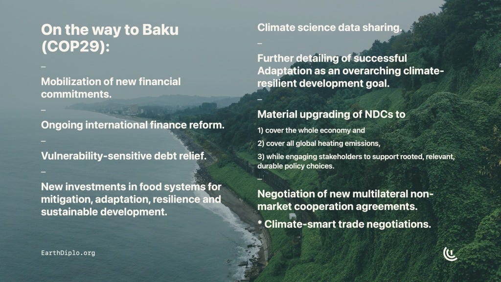 The CCI presentation also pointed to some expected areas of advance work on the way to the COP29 round of negotiations in Baku, Azerbaijan. Advances in the areas listed below will be critical for converting ambitious commitments into real-world progress toward successful climate-resilient development.