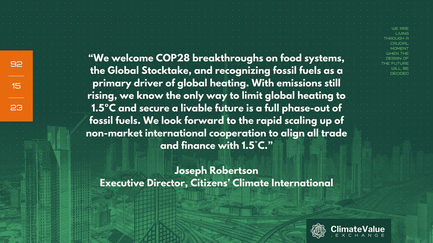 Citizens’ Climate International’s perspective on the COP28 was that, according to the Convention mandate, Paris Agreement, consensus science, and overall range of agreed commitments, the transition away from fossil fuels is now effectively international law. Language seeking to carve out room for expanded global heating emissions, by contrast, is really just a wish—not altering the overall legal responsibility of governments to prevent dangerous climate change.