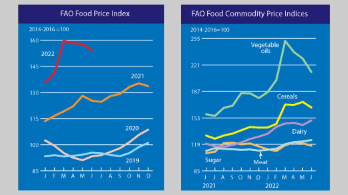 All of this happens against a backdrop of soaring food prices. The global Food Price Index tracked by FAO hit an all time record high in February and again in March. Though prices have come down from the March high, every month since has been significantly higher than any month prior to February 2022.