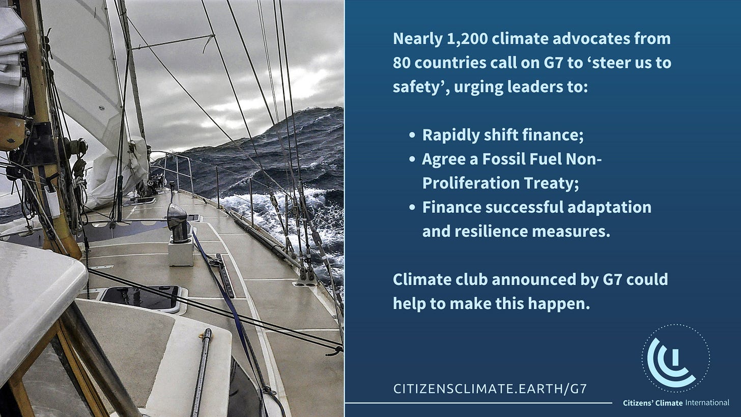 Citizens’ Climate International helped advocates from 80 countries deliver letters to the G7 Leaders calling on them to steer us to safety, by: