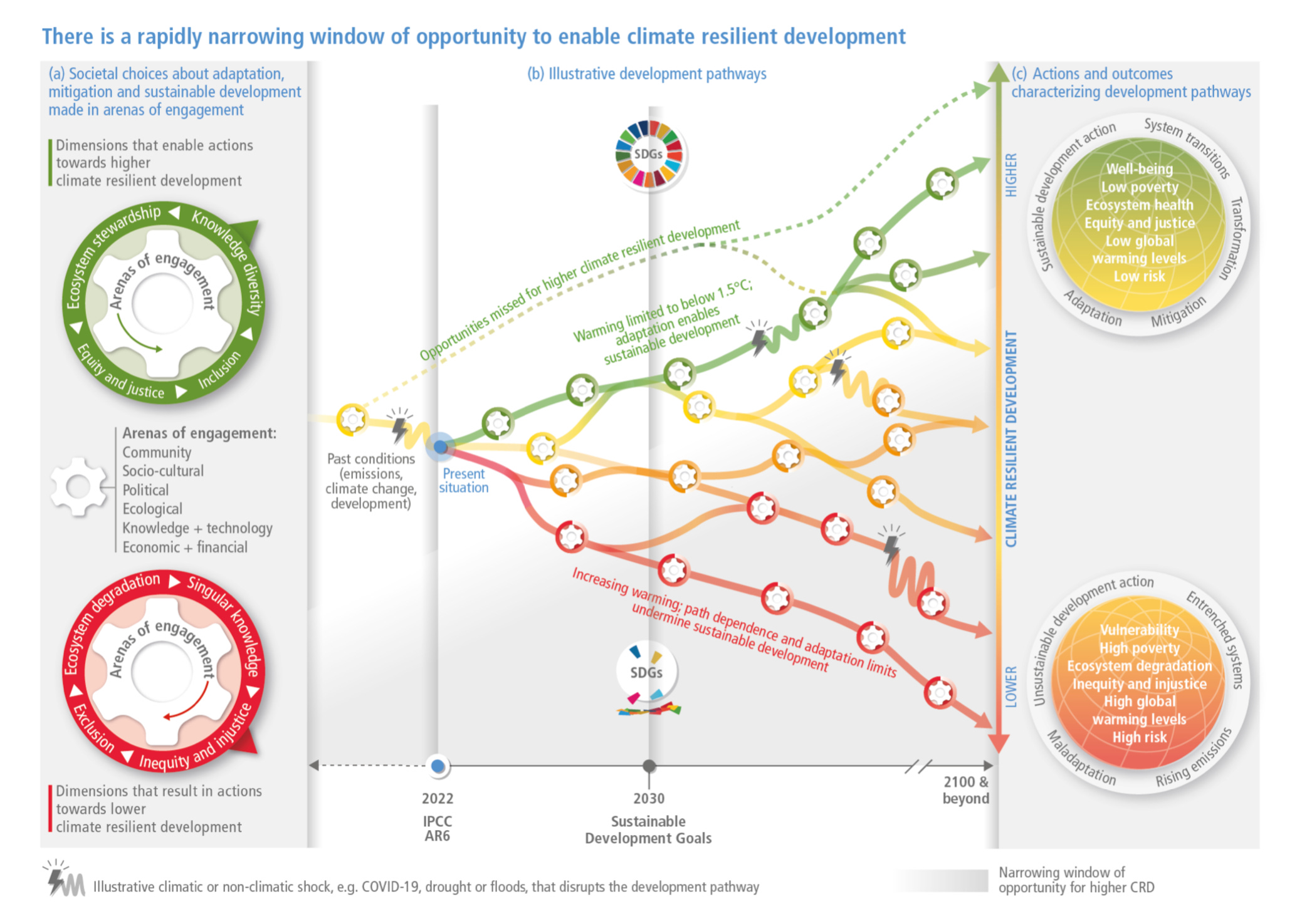 The latest report from the Intergovernmental Panel on Climate Change finds that human-caused climate disruption is happening everywhere, that the window for successful mitigation, adaptation, and resilience-building is rapidly closing, and that some regions are already coming up against both hard and soft barriers to adaptation. Food and water supplies are at risk of collapse, threatening the stability of financial systems and nation states.